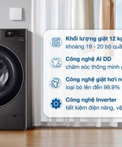Máy giặt LG AI DD Inverter 12 kg là lựa chọn hoàn hảo cho những gia đình đông thành viên từ 5 – 7 người. Sản phẩm sở hữu thiết kế hiện đại, dung tích lớn, cùng loạt công nghệ giặt thông minh như AI DD™ nhận diện vải, Inverter tiết kiệm điện năng, TurboWash™ rút ngắn thời gian giặt, và khả năng kết nối thông minh SmartThinQ™. Với những ưu điểm vượt trội, chiếc máy giặt này không chỉ giúp tiết kiệm thời gian, công sức mà còn đảm bảo quần áo luôn bền đẹp, sạch khuẩn, đáp ứng nhu cầu giặt giũ hàng ngày của gia đình.